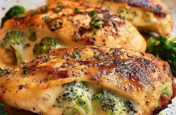 – Carefully fill each chicken breast pocket with the broccoli and cheese mixture. Secure the opening with toothpicks if necessary to prevent the filling from spilling out during cooking.