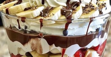 Ingredients – 4 ripe bananas, sliced– 1 pint strawberries, hulled and sliced– 1 cup raspberries– 2 cups whipped cream (store-bought…