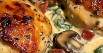 Smothered Chicken with Creamed Spinach, Bacon, and Mushrooms Recipe