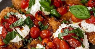 Crispy Chicken Cutlets with Burrata, Cherry Tomatoes, and Basil