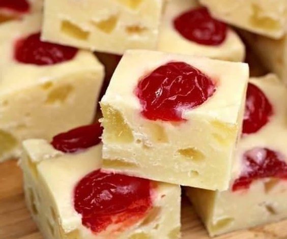 Enjoy your creamy pineapple and cherry squares! This dessert is perfect for a sweet treat or a party snack.