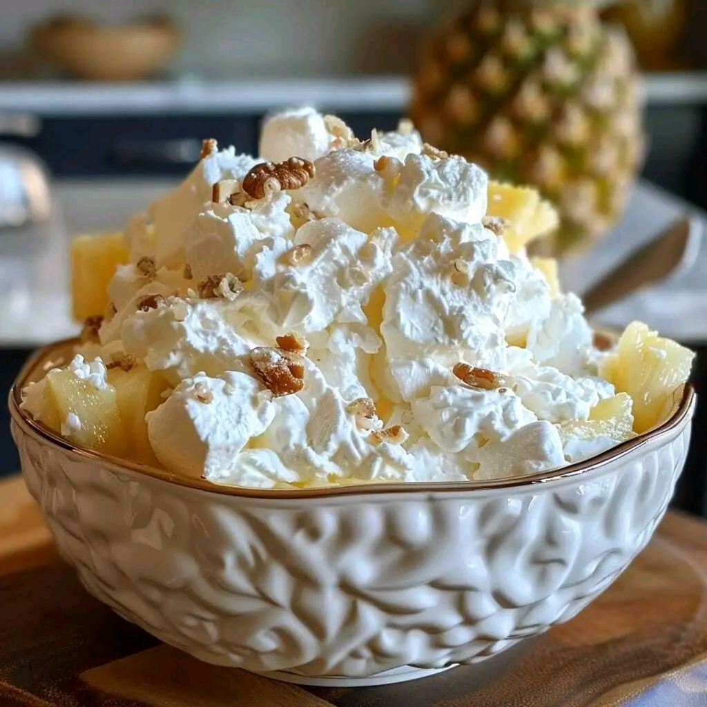 This salad balances sweet pineapple, creamy coconut, and optional add‑ins (nuts, other fruits) to create texture and flavor contrasts. The creaminess (from yogurt, whipped cream, or coconut cream) helps marry the tropical flavors. Because it’s no‑cook and easy to assemble, it’s ideal for warm days or when you want a vibrant, light but satisfying dish. The ingredients are flexible so you can tweak sweetness, creaminess, or fruit mix to your taste.