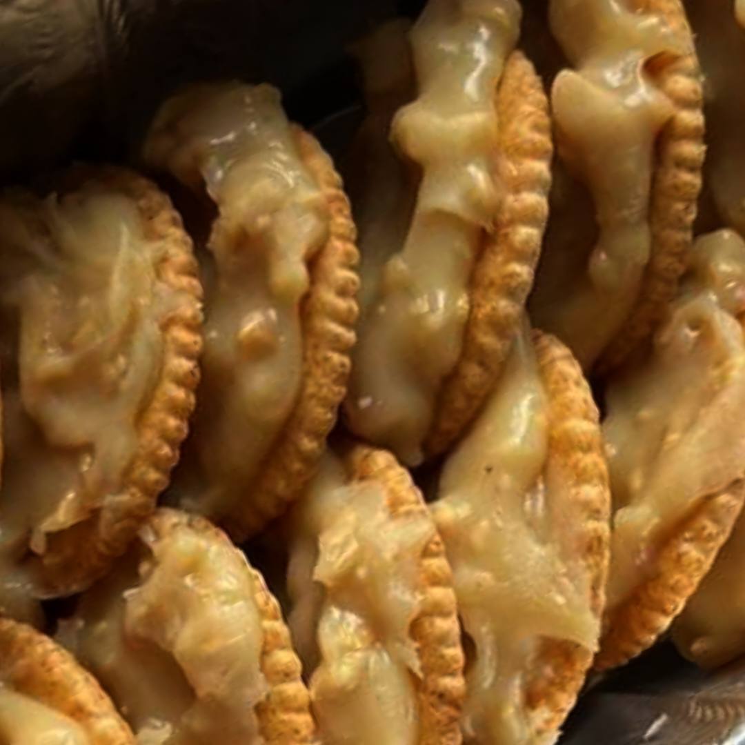 Use a cookie scoop to top each cracker with the caramel mixture.