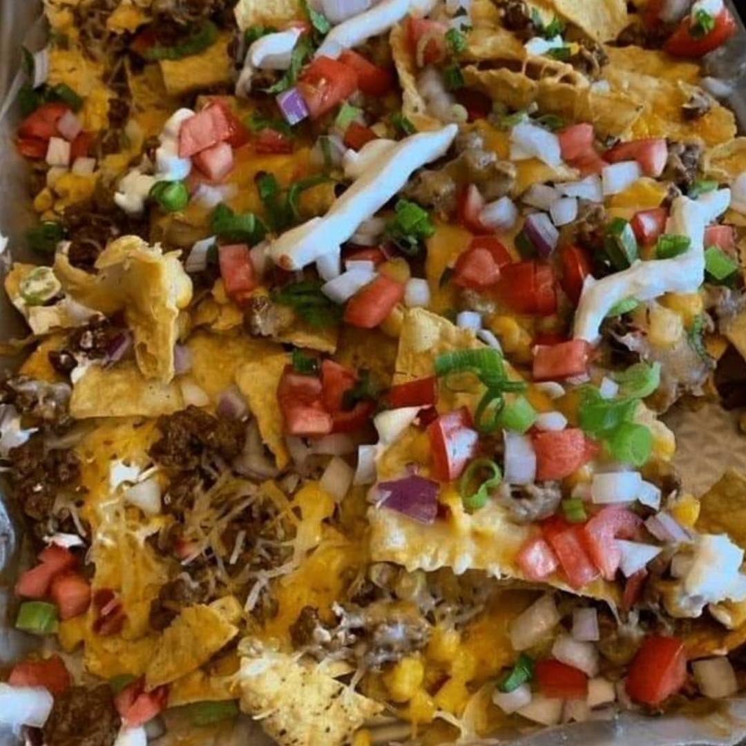 Add Fresh Toppings: Once out of the oven, immediately top your epic nachos with the diced tomatoes and chopped green onions for a burst of freshness.