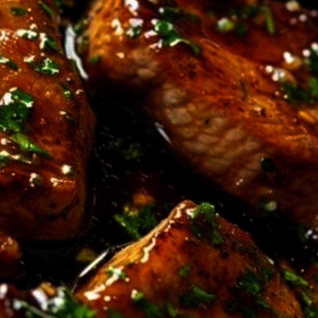 7. Just before serving, garnish the pork chops with some fresh parsley.