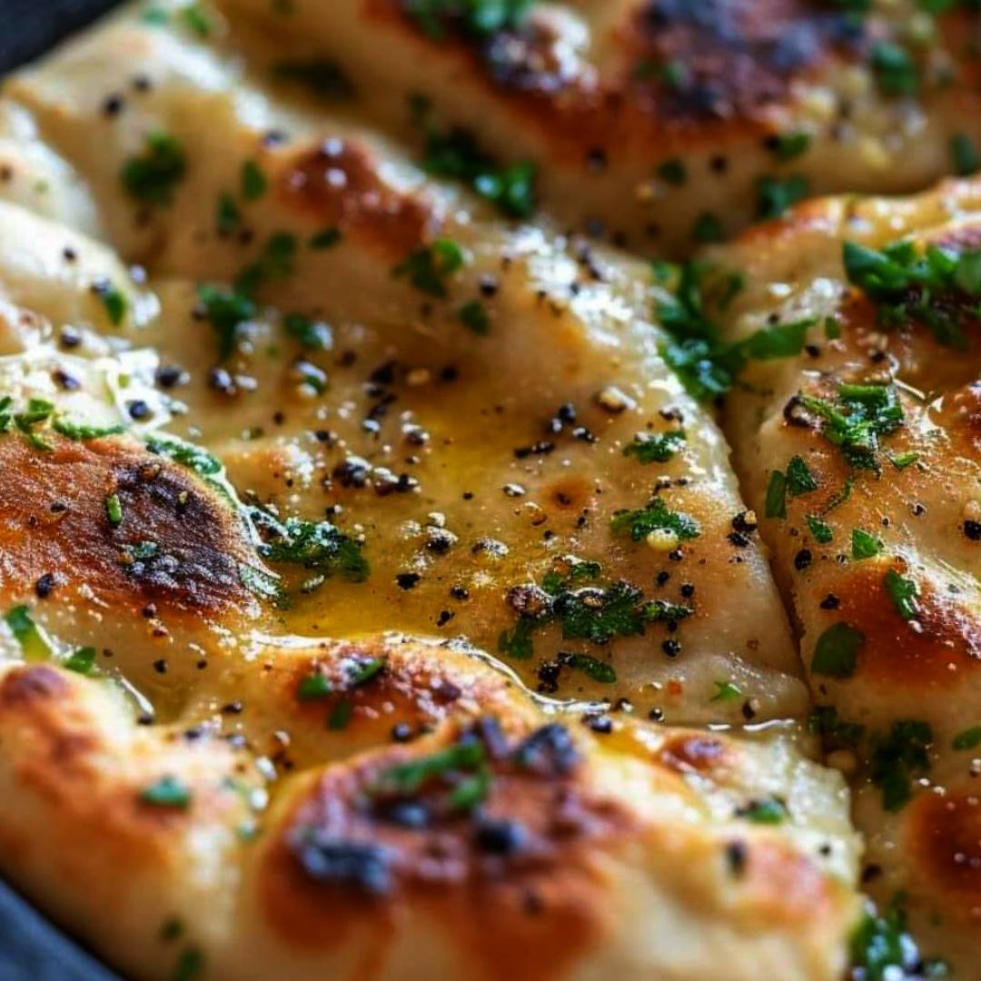 6. In the same skillet, melt the butter and sauté the minced garlic until fragrant. Brush this garlic butter generously over each flatbread.