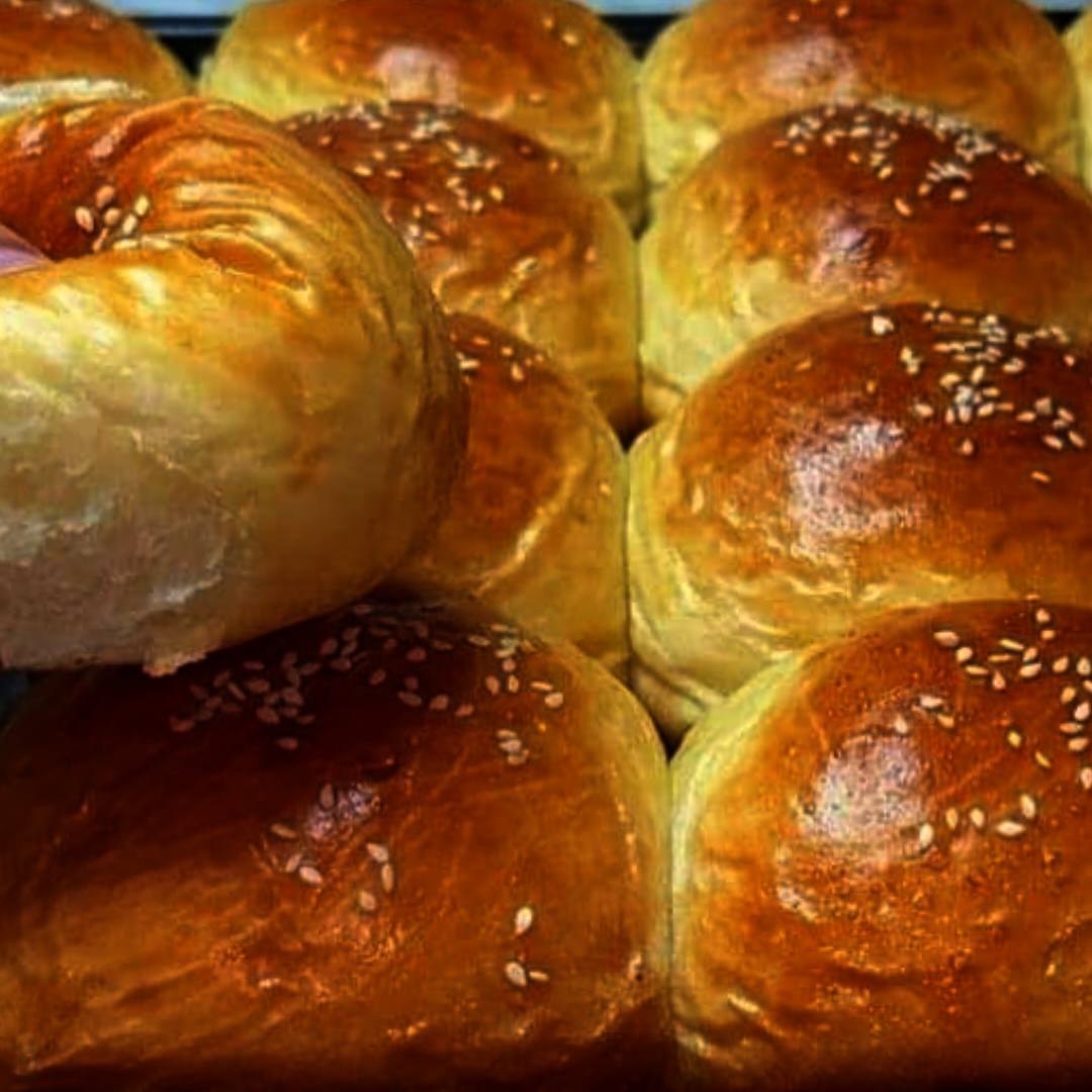 Position a rack in the center of the oven, and preheat it to 350° F/175°C. Brush the risen dough with egg wash. Bake for 23-25 minutes, or until golden brown. Remove from the oven and brush the warm bread with sugar water to give it shine and sweetness.