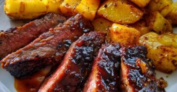 high protein meals, easy dinner recipes, beef recipe, roasted potatoes recipe, honey garlic sauce, comfort food entrees, meal prep dinners,…