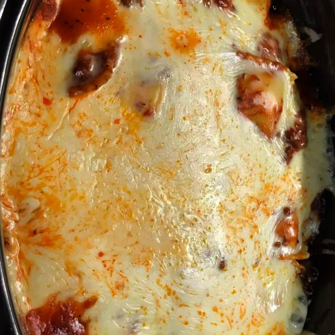The second step is to cover the pan’s base with ½ jar of sauce.