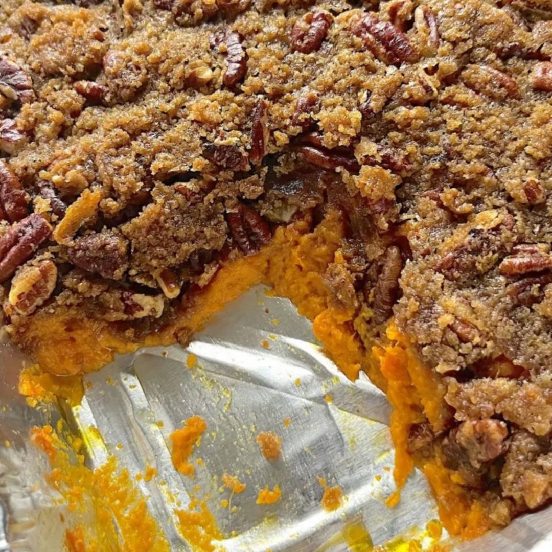 Love sweet potato casserole! For a larger casserole, here’s what I did and it was awesome. I baked and cooled fresh sweet potatoes first. I doubled the amounts of mashed potatoes and sugar, leaving the butter and vanilla the same, used 1 jumbo egg, and to make a firmer casserole, I omitted the milk altogether. I baked it for about 30-35 minutes before adding the Topping, then baked for another 15 minutes or so. To me, it’s best to let it rest 20-30 minutes before serving. Another note..any leftover Topping freezes well for the next time.