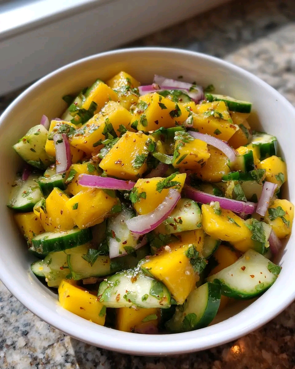 - If the salad becomes watery, you can gently drain excess liquid and toss again, or add a little extra fresh mango or cucumber to refresh.